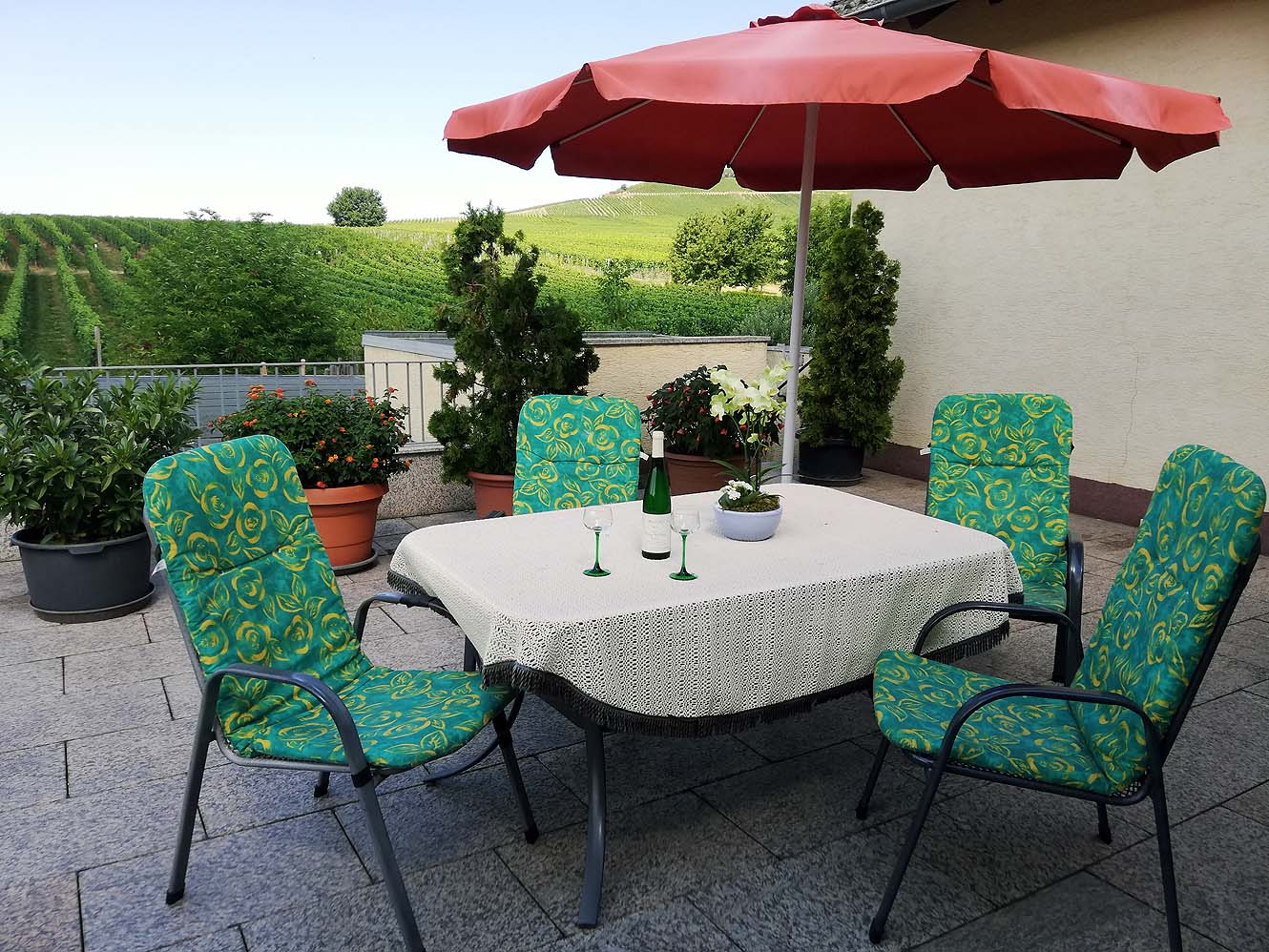 Petra en Alfons zijn de ontzettend gastvrije eigenaren, die in alles met je willen meedenken! Heerlijk genieten van hun heerlijke wijnen op het heerlijke terras. De omgeving is prachtig (ook om te fietsen). In het dorp zijn alle voorzieningen voor eten en drinken. We hebben er een fijne tijd gehad.